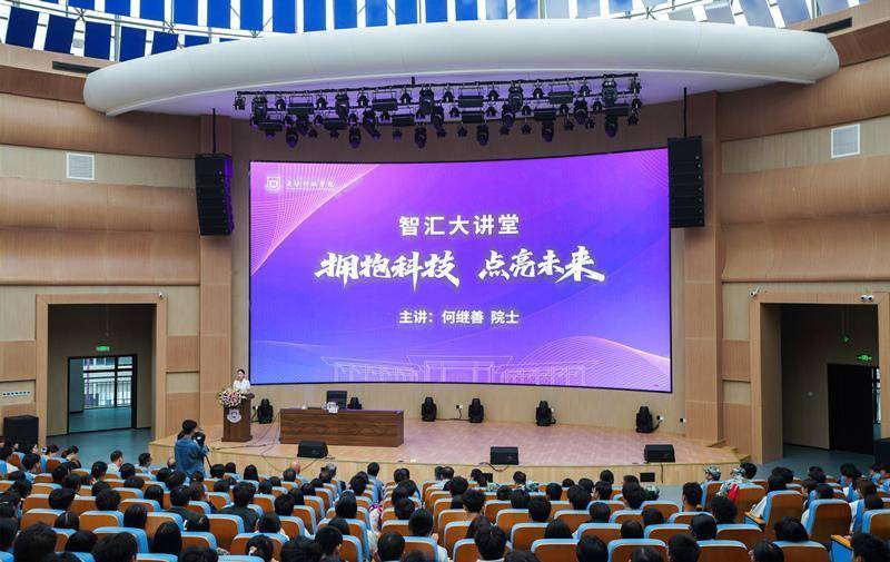 讲座现场。长沙科技学院供图9月20日,长沙科技学院《智汇大讲堂》首场讲座在该校图书馆报告厅开讲,91岁高龄的中国工程院院士何继善受邀为2000多名师生主讲了一堂题为《拥抱科技 点亮未来》的精彩讲座。